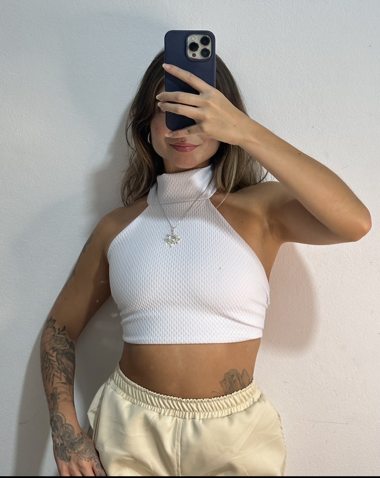 Pronta Entrega na malha piquet branca, no tamanho P/M.