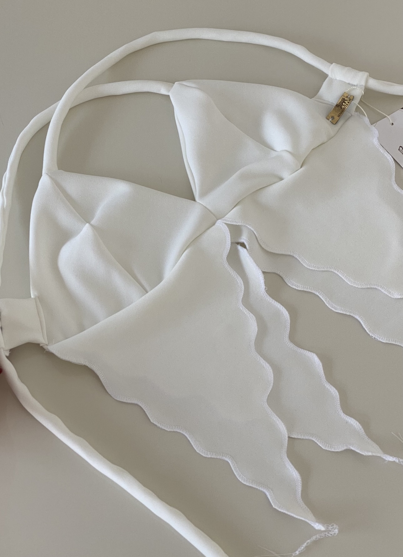 Aquele cropped diferente e lindo, sabe? O recorte dele é único, dá uma ótima sustentação aos seios, e tem um charme ímpar né? Um dos favoritos por aqui!